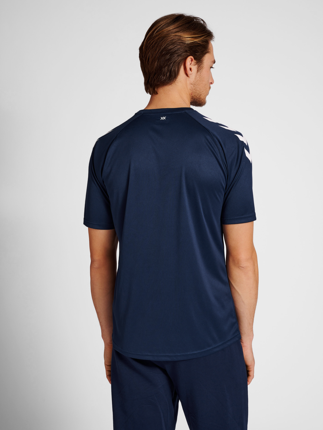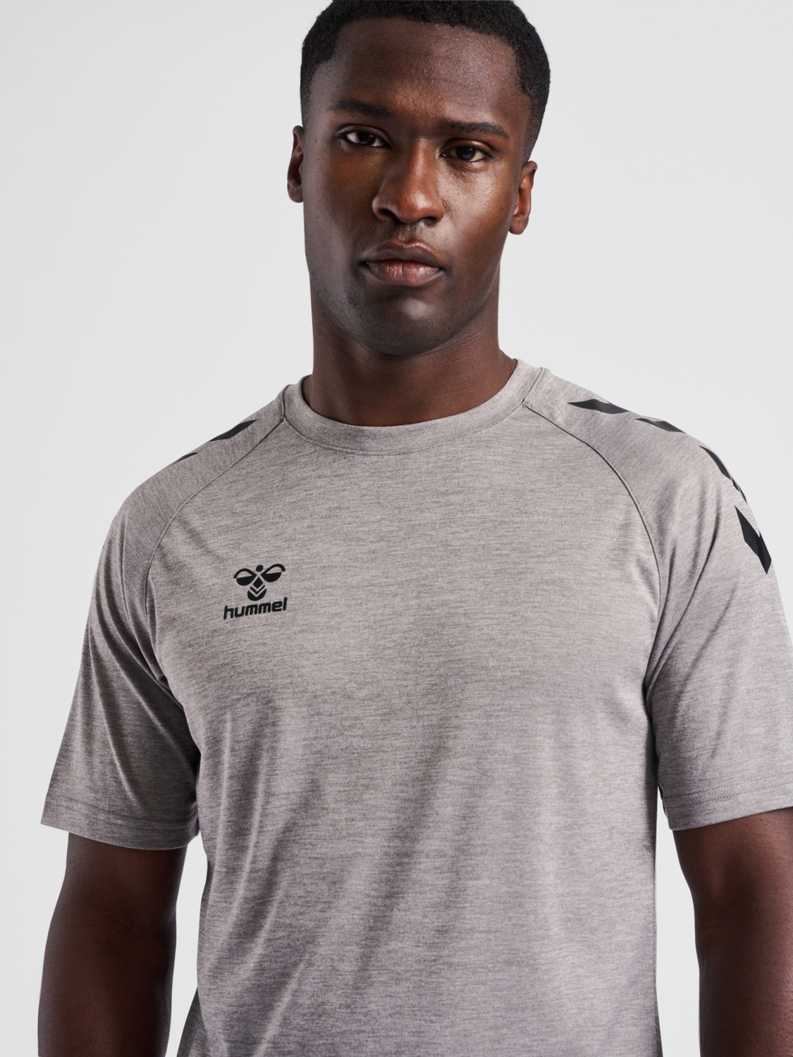 The regular fit ensures unrestricted movement, while the printed chevrons and Hummel logo add a sporty edge to its minimalist design. Whether you're hitting the pitch, warming up at the gym, or building your team kit, this T-shirt delivers durability, style, and all-day comfort.